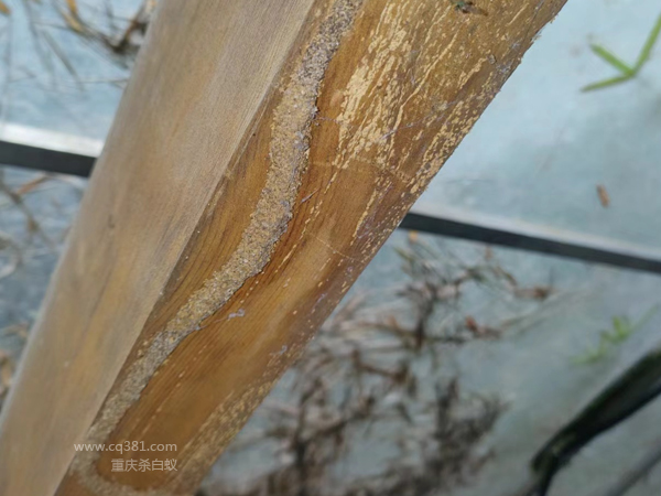 白蚁沿木结构横梁修筑蚁路继续危害另一侧木构件